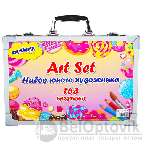 Набор ЮНОГО ХУДОЖНИКА "Candy Land" для рисования и творчества в кейсе ЮНЛАНДИЯ, 163 предмета, 664633