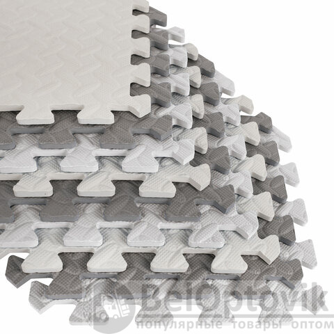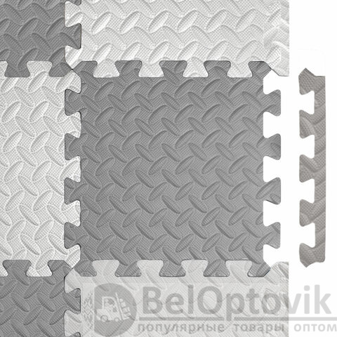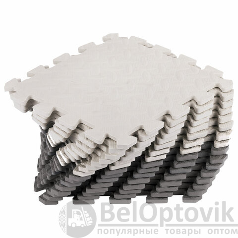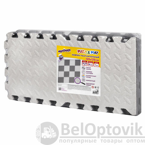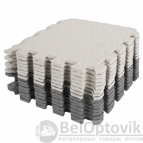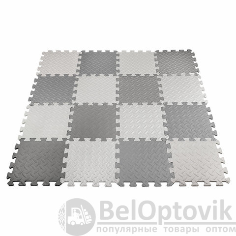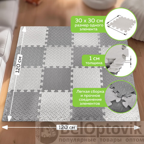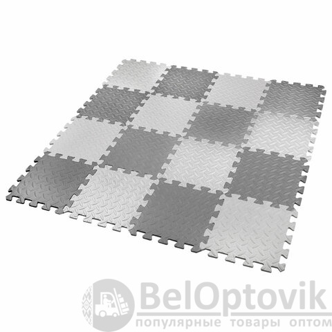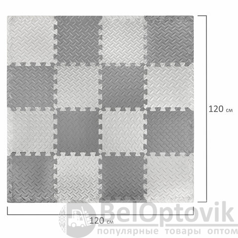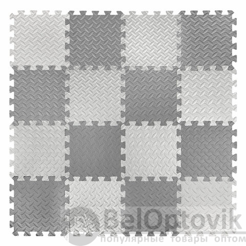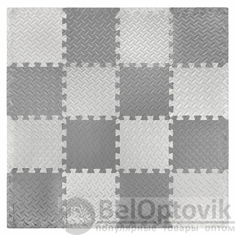 Коврик-пазл напольный 1,2х1,2 м, 16 шт., 30х30 см, толщина 1 см, серый, светло-серый, ЮНЛАНДИЯ, 664811