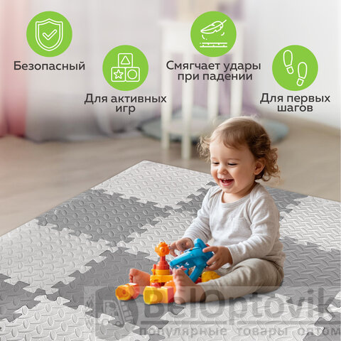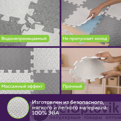 Коврик-пазл изготовлен из безопасного, мягкого и легкого материала – этиленвинилацетата (100% ЭВА).