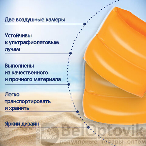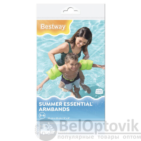 Нарукавники для плавания "Классические" BESTWAY предназначены для детей в возрасте от 3 до 6 лет. Они помогут ребенку справиться со страхом и научат держаться на воде. Размер нарукавников – 20х20 см.