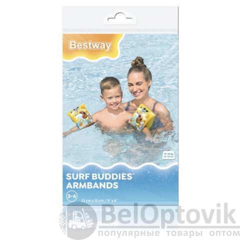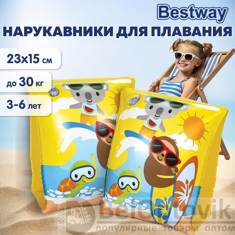 Нарукавники для плавания BESTWAY предназначены для детей в возрасте от 3 до 6 лет. Они помогут ребенку справиться со страхом и научат держаться на воде. Размер нарукавников – 23х15 см.