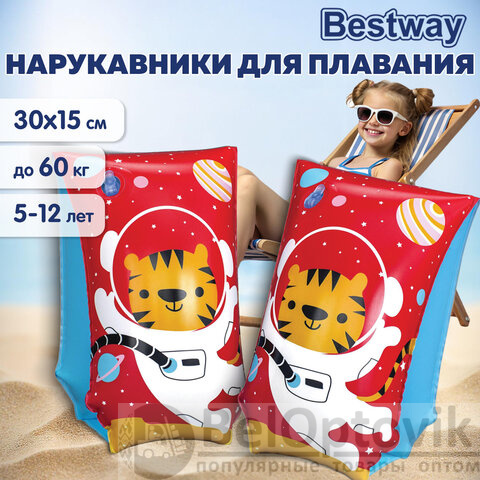 Нарукавники для плавания BESTWAY предназначены для детей в возрасте от 5 до 12 лет. Они помогут ребенку справиться со страхом и научат держаться на воде. Размер нарукавников – 30х15 см.