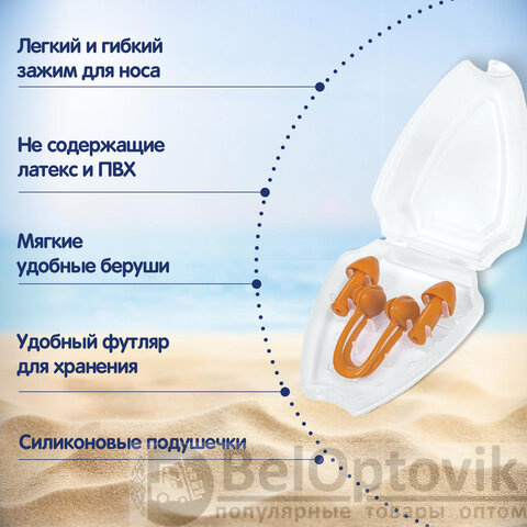 - Комплектация: беруши, зажим для носа, футляр для хранения принадлежностей