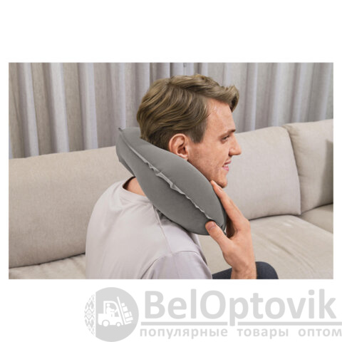 Дорожная надувная подушка под шею BESTWAY Flocked Travel Pillow обеспечивает удобство и комфорт при длительных поездках и сне