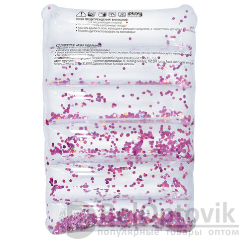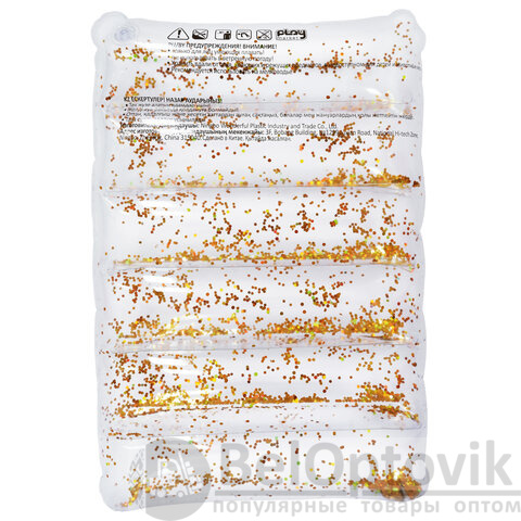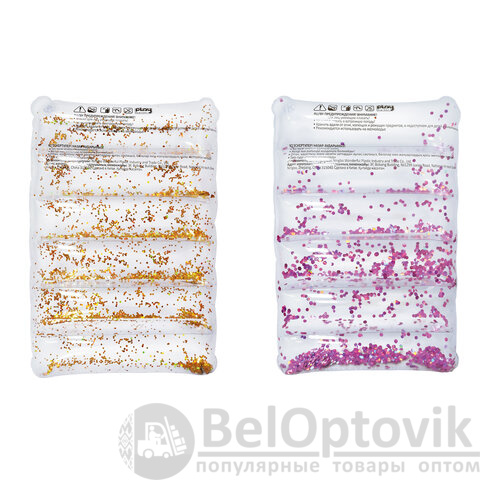 Максимальная нагрузка – 20 кг. Размер – 49х31х10 см. Дизайн – прозрачная с двумя видами блёсток (без возможности выбора): золотыми и розовыми.