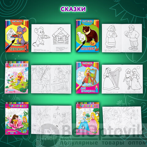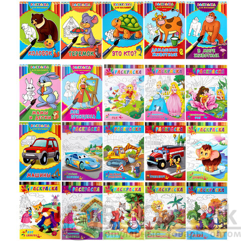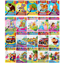 Комплект состоит из 20 раскрасок разных сюжетов без возможности выбора сюжетов!