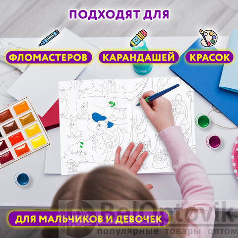 В наборе книжек-раскрасок формата А4 "ДЛЯ ДЕВОЧЕК И МАЛЬЧИКОВ" представлено много интересных и увлекательных сюжетов. Дайте малышу цветные карандаши, краски или фломастеры, и он с удовольствием и пользой проведет время!