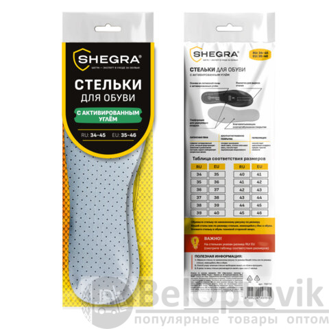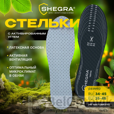 Спешите приобрести стельки для обуви SHEGRA с АКТИВИРОВАННЫМ УГЛЕМ по выгодной цене!