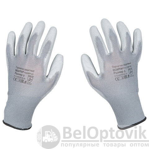 Перчатки нейлоновые SCAFFA "Базис", полиуретановое покрытие (облив), размер 9 (L), 00-00012435