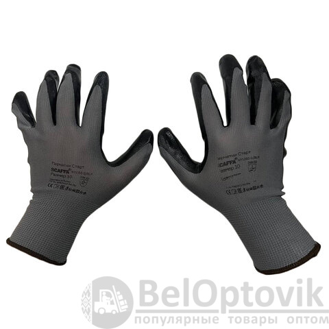 Перчатки нейлоновые SCAFFA "Старт", нитриловое покрытие (облив), размер 10 (XL), 00-01018560