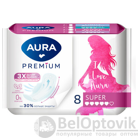 Нежные прокладки AURA Premium SUPER обеспечивают надёжную защиту во время месячных. Гипоаллергенные материалы без отдушек и система нейтрализации запаха гарантируют комфорт и безопасность.