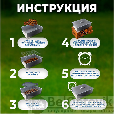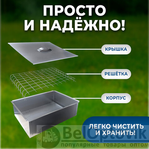 Коптильня одноярусная металлическая, размер 350х260х100 мм, в гофрокоробе, 701729