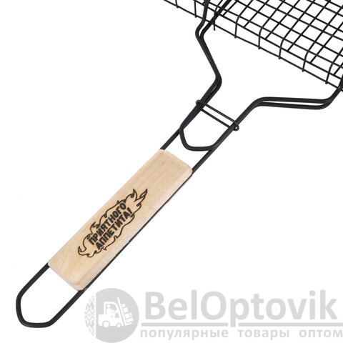 Прутики из прочной стали выдерживают высокие температуры и обеспечивают долгий срок службы. Оксидированное покрытие защищает от коррозии, устойчиво к огню и безопасно для здоровья. Конструкция плотно закрывается и надёжно удерживает продукты при готовке. Деревянная рукоятка не нагревается, удобно ложится в руку и защищает от ожогов.