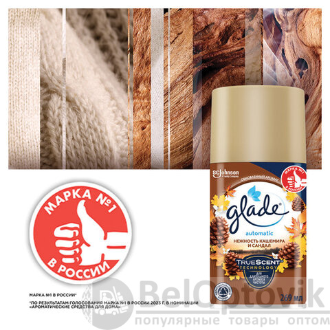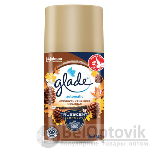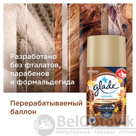 Сменный баллон 269 мл, GLADE "Нежность кашемира и сандал" для автоматических освежителей, 864984