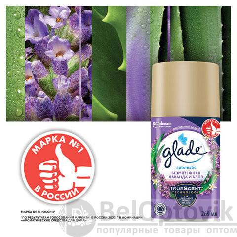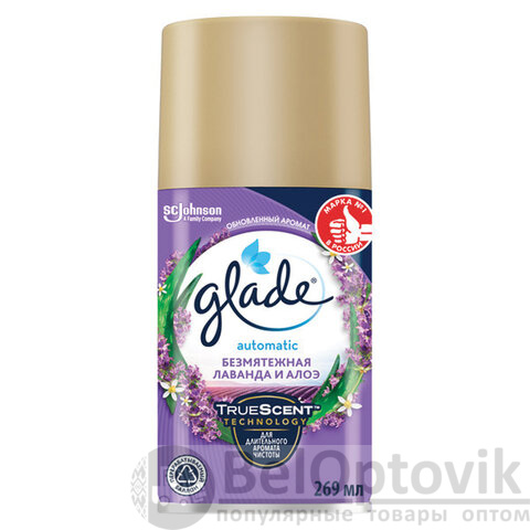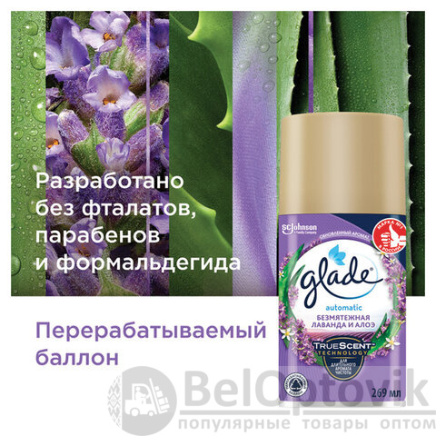 Сменный баллон 269 мл, GLADE "Безмятежная лаванда и алоэ" для автоматических освежителей, 864986