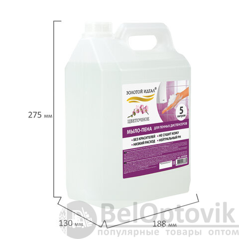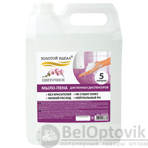 Жидкое мыло-пена ЗОЛОТОЙ ИДЕАЛ "Цветочное" идеально подходит для использования в офисах, отелях, ресторанах и других общественных местах.