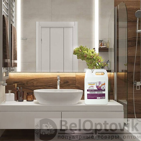 Средство универсального применения отлично очищает и смягчает кожу, обеспечивает уход и увлажнение, обладает приятным ароматом эфирных масел. Подходит для всех типов кожи и не содержит формальдегида. Большого объема 5 л хватит надолго, что позволит сэкономить время и средства. При необходимости можно перелить во флакон с дозатором.
