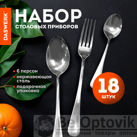 Набор столовых приборов DASWERK из 18 предметов предназначен для сервировки стола на 6 персон.
