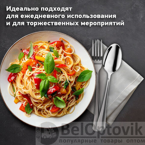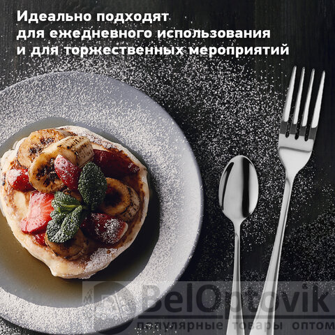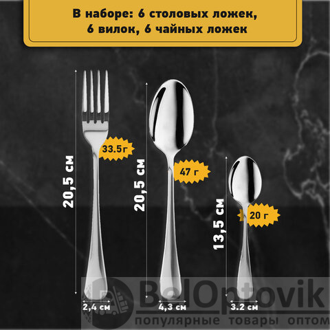 В набор входят 6 столовых ложек, 6 вилок и 6 чайных ложек – это позволяет использовать приборы для употребления разных блюд.