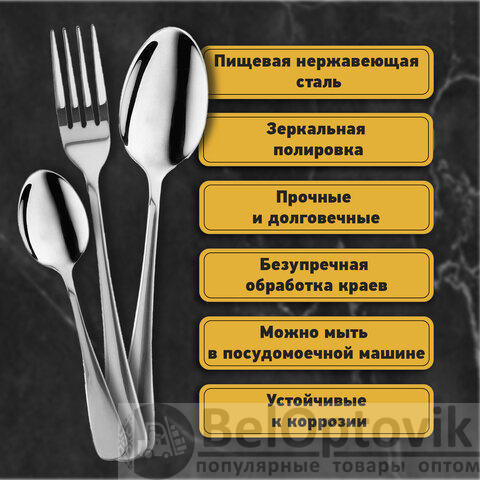 - Комплектация: вилки, столовые ложки, чайные ложки