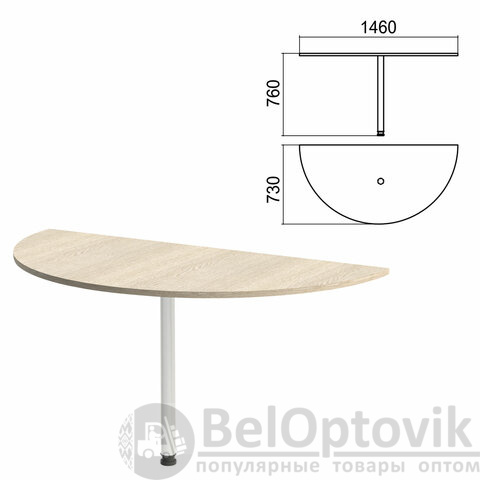 Стол приставной полукруг "Арго", 1460х730х760 мм, ясень шимо/опора хром (КОМПЛЕКТ)