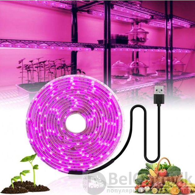 Купить фитоленту светодиодную "Полный спектр" 5В с USB, 1 метр на нашем сайте можно ОПТОМ от 20 шт. или не менее 5, если Вы покупаете у нас и другие товары (сборный заказ).
