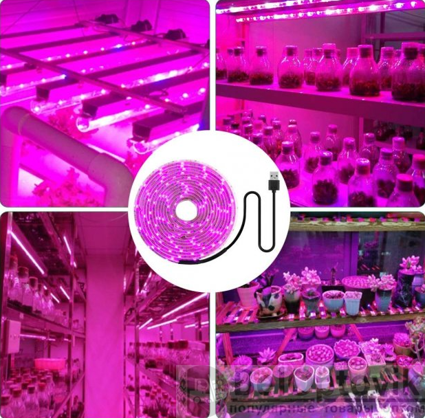 - Простая установка: просто подключите фитоленту в USB-порт и она начнет работать. Вы можете подключить ленту в любой USB-адаптер (блок питания, ноутбук и тому подобное)