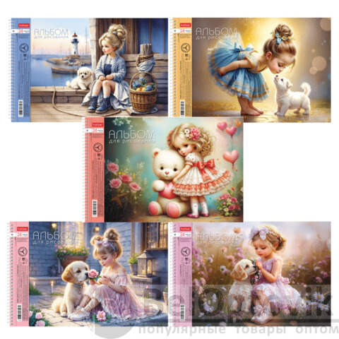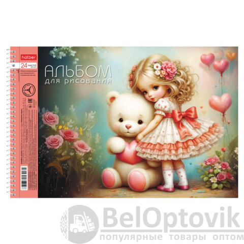 Альбом для рисования А4 24 л., спираль, обложка картон, HATBER, 198х300 мм, "Нежная любовь" (5 видов), 085258, 24А4Всп