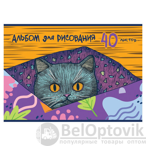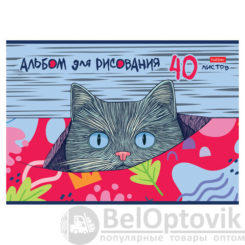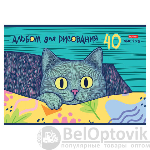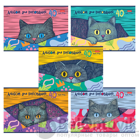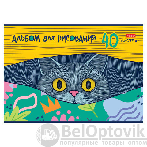 Альбом для рисования А4, 40 л., скоба, обложка картон, HATBER, 205х290 мм, "Котофей" (5 видов), 091512, 40А4В