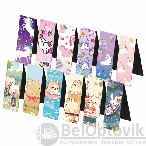 Закладки выполнены из картона и винила, надежно крепятся на листе благодаря магнитной полосе. Позволяют быстро найти нужную страницу. Удобны в применении и даже спустя большое количество времени будут выглядеть аккуратно. Размер закладки в сложенном виде – 60x20 мм. В наборе 12 штук. Яркие, красочные дизайны для девочек.