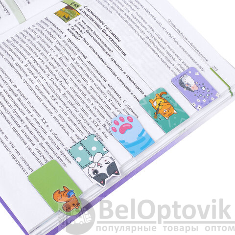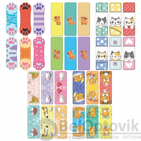 Закладки выполнены из картона и винила, надежно крепятся на листе благодаря магнитной полосе. Позволяют быстро найти нужную страницу. Удобны в применении и даже спустя большое количество времени будут выглядеть аккуратно. Размер закладки в сложенном виде – 35x25 мм. В наборе 30 штук, яркие дизайны.