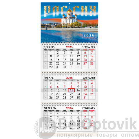- Тип календаря: квартальный на 3 гребнях