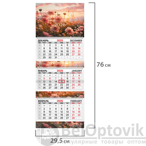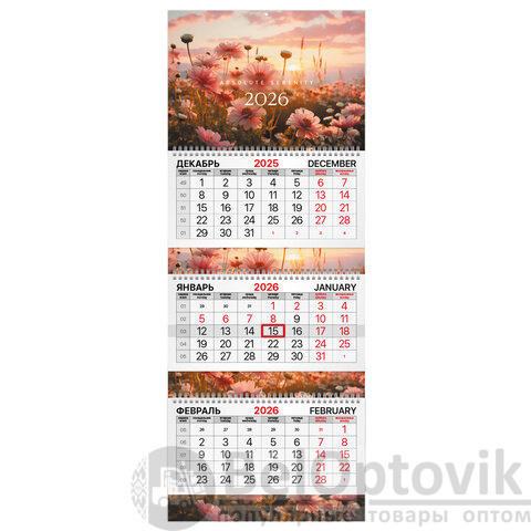 - Тип календаря: квартальный на 3 гребнях