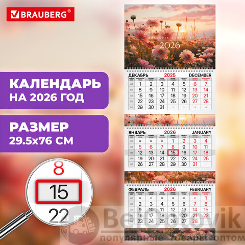 Покупайте квартальный календарь BRAUBERG EXTRA "Цветы" – это незаменимый помощник в планировании рабочего времени!