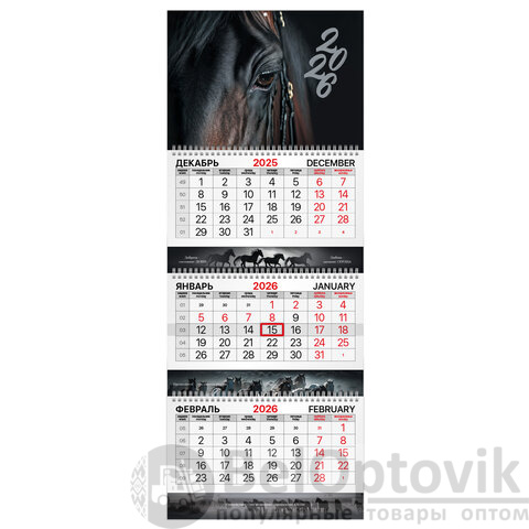 - Тип календаря: квартальный на 3 гребнях