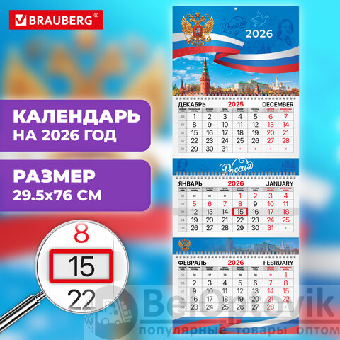 Календарь квартальный 2026 г., 3 блока, 3 гребня, бегунок, мелованная бумага, BRAUBERG EXTRA, "Символика", 116814