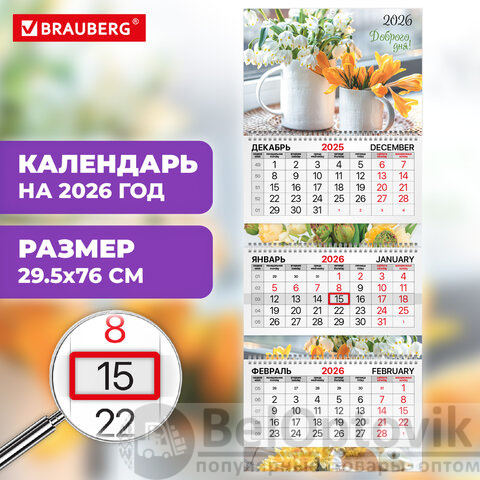 Покупайте квартальный календарь BRAUBERG EXTRA "Весенние цветы" – это незаменимый помощник в планировании рабочего времени!