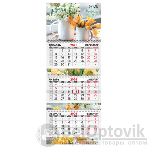 - Тип календаря: квартальный на 3 гребнях