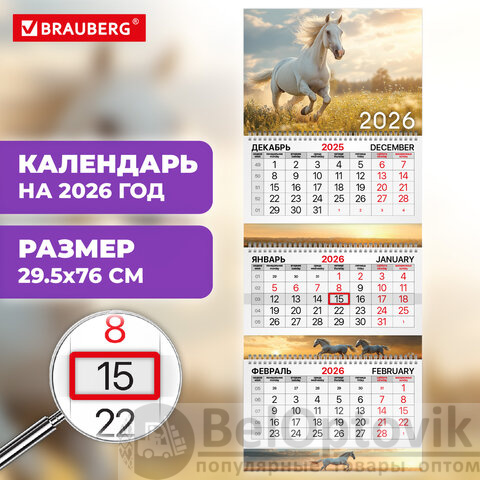 Покупайте квартальный календарь BRAUBERG EXTRA "Символ 2026" – это незаменимый помощник в планировании рабочего времени!
