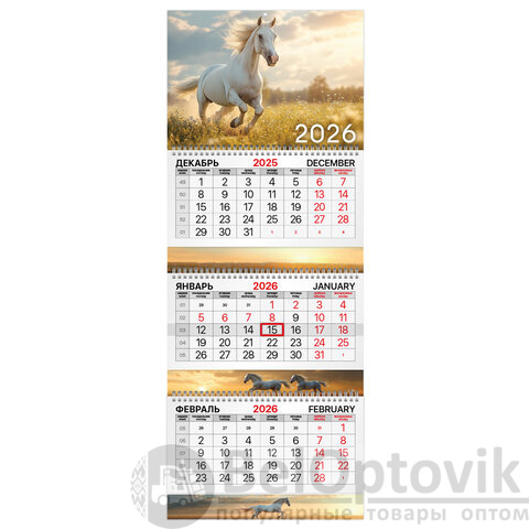 - Тип календаря: квартальный на 3 гребнях