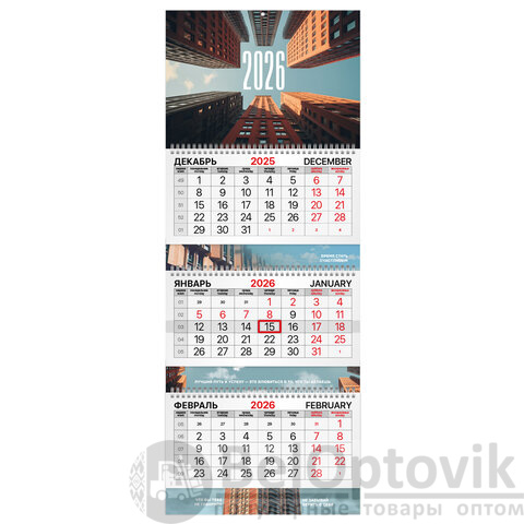 - Тип календаря: квартальный на 3 гребнях
