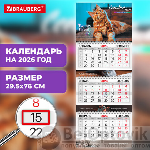Покупайте квартальный календарь BRAUBERG EXTRA "Котик" – это незаменимый помощник в планировании рабочего времени!
