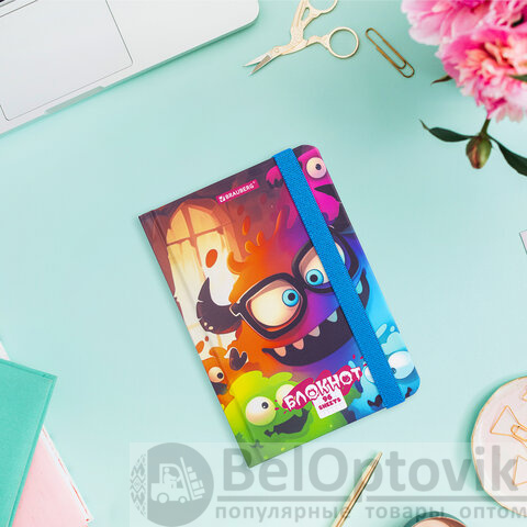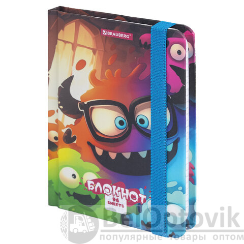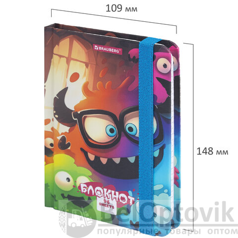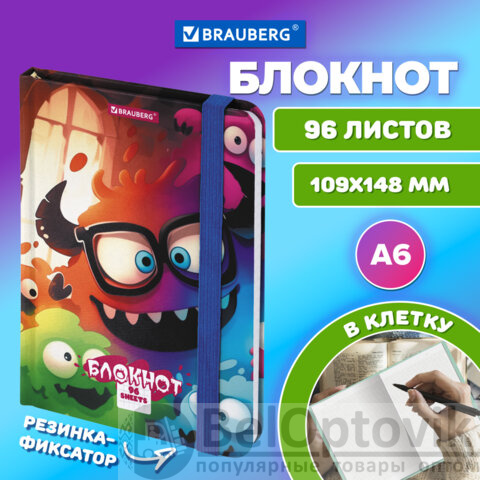 Блокнот с резинкой в клетку 96 л., МАЛЫЙ ФОРМАТ А6, 109х148 мм, BRAUBERG, кросс-серия "МОНСТРИКИ", 117001