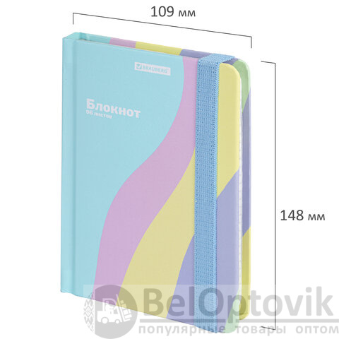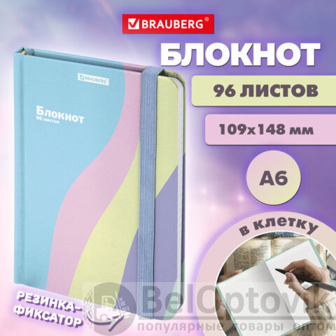 Блокнот с резинкой в клетку 96 л., МАЛЫЙ ФОРМАТ А6, 109х148 мм, BRAUBERG, кросс-серия "PASTEL", 117019
