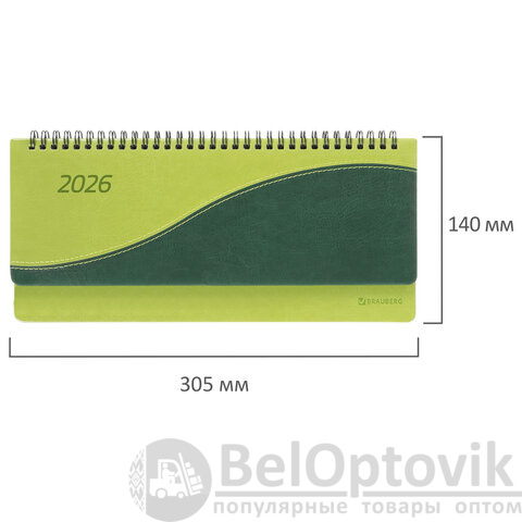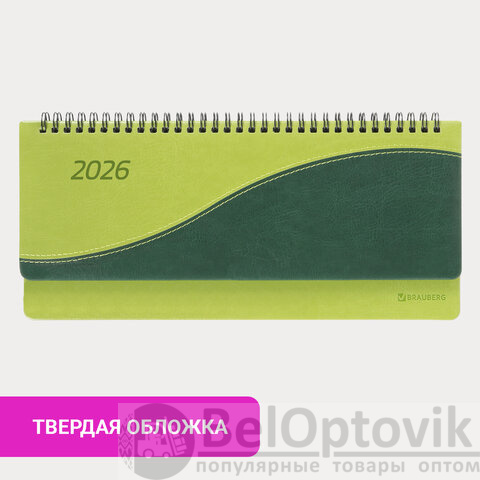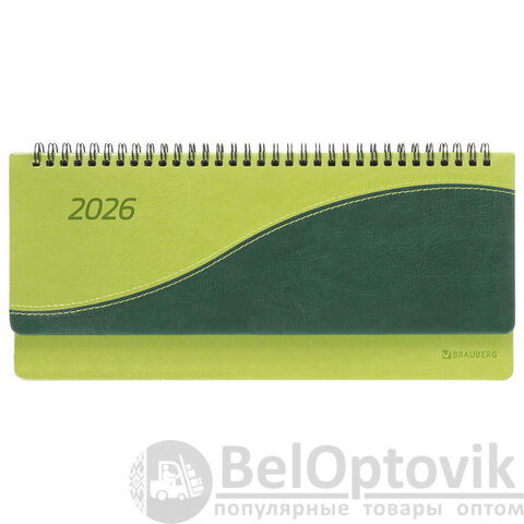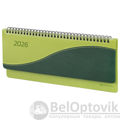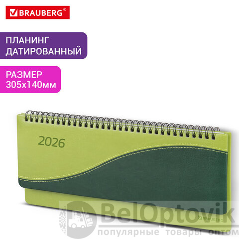 Планинг датированный 2026 305х140 мм BRAUBERG "Bond", под кожу, светло-зеленый, 117221