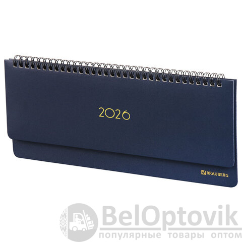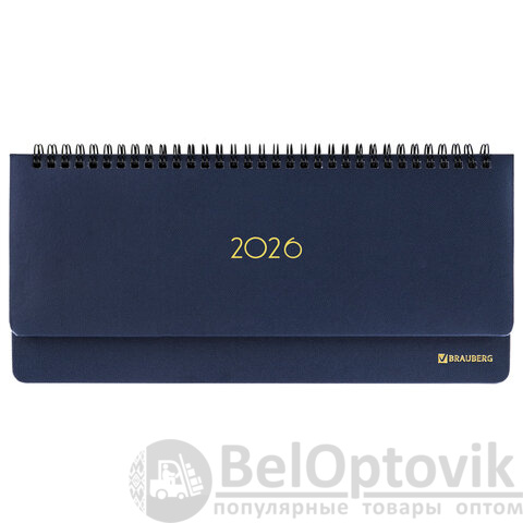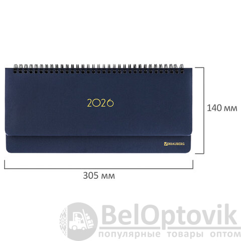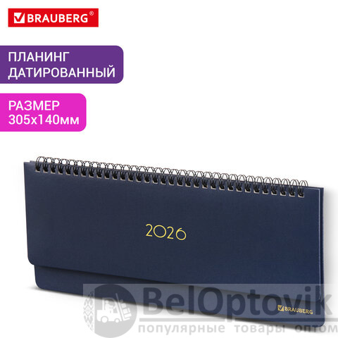 Планинг датированный 2026 305х140 мм BRAUBERG "Select", под кожу, темно-синий, 117231