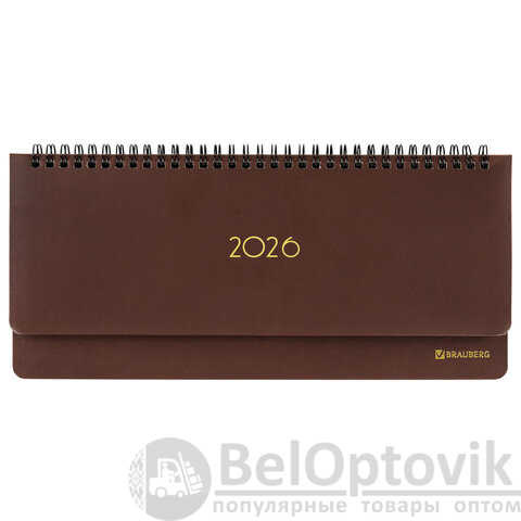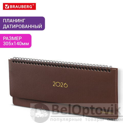 Планинг датированный 2026 305х140 мм BRAUBERG "Select", под кожу, коричневый, 117233