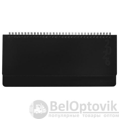Внутренний блок содержит 60 листов офсетной бумаги белого цвета плотностью 70 г/м2. Обложка из экокожи и твердый переплет обеспечивают долгий срок службы. Для заметок в планинге имеется 11 страниц в конце внутреннего блока. Подходит для горячего тиснения. Скрепление осуществляется с помощью евроспирали. Размер изделия – 305х140 мм.