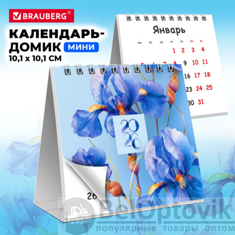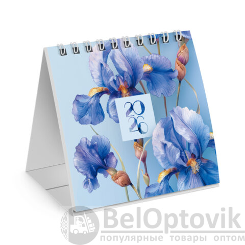 Календарь-домик настольный на гребне, 2026 г., BRAUBERG, 101х101 мм, "Цветы", 117275