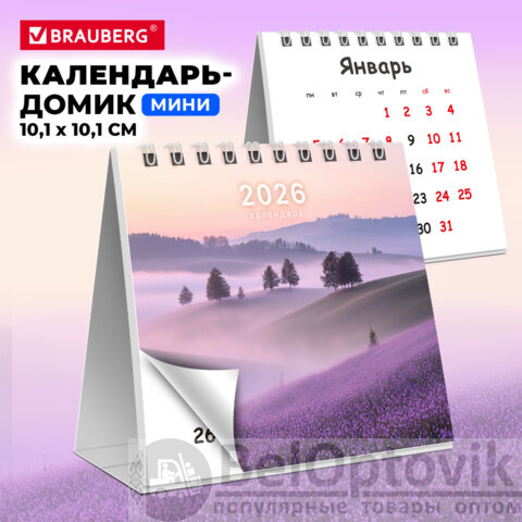 Календарь-домик настольный на гребне, 2026 г., BRAUBERG, 101х101 мм, "Пейзаж", 117276